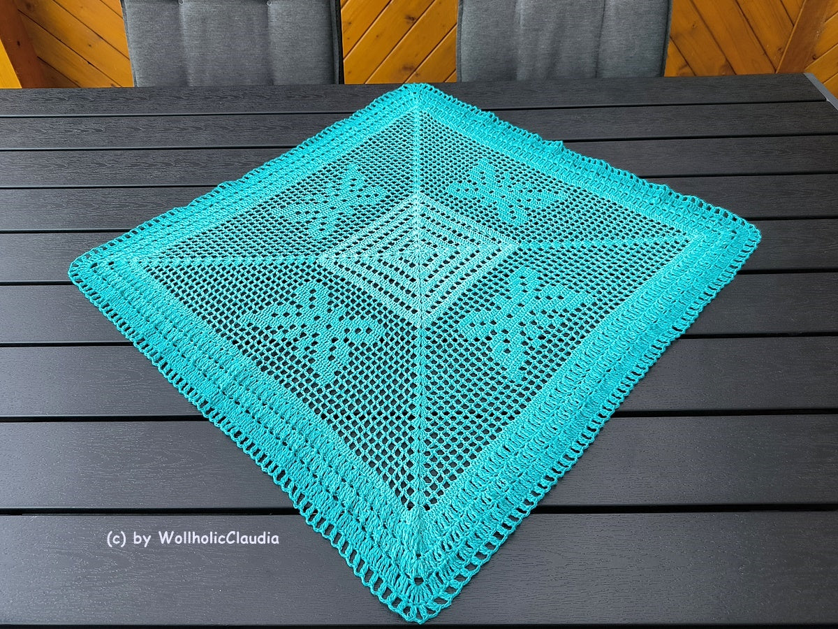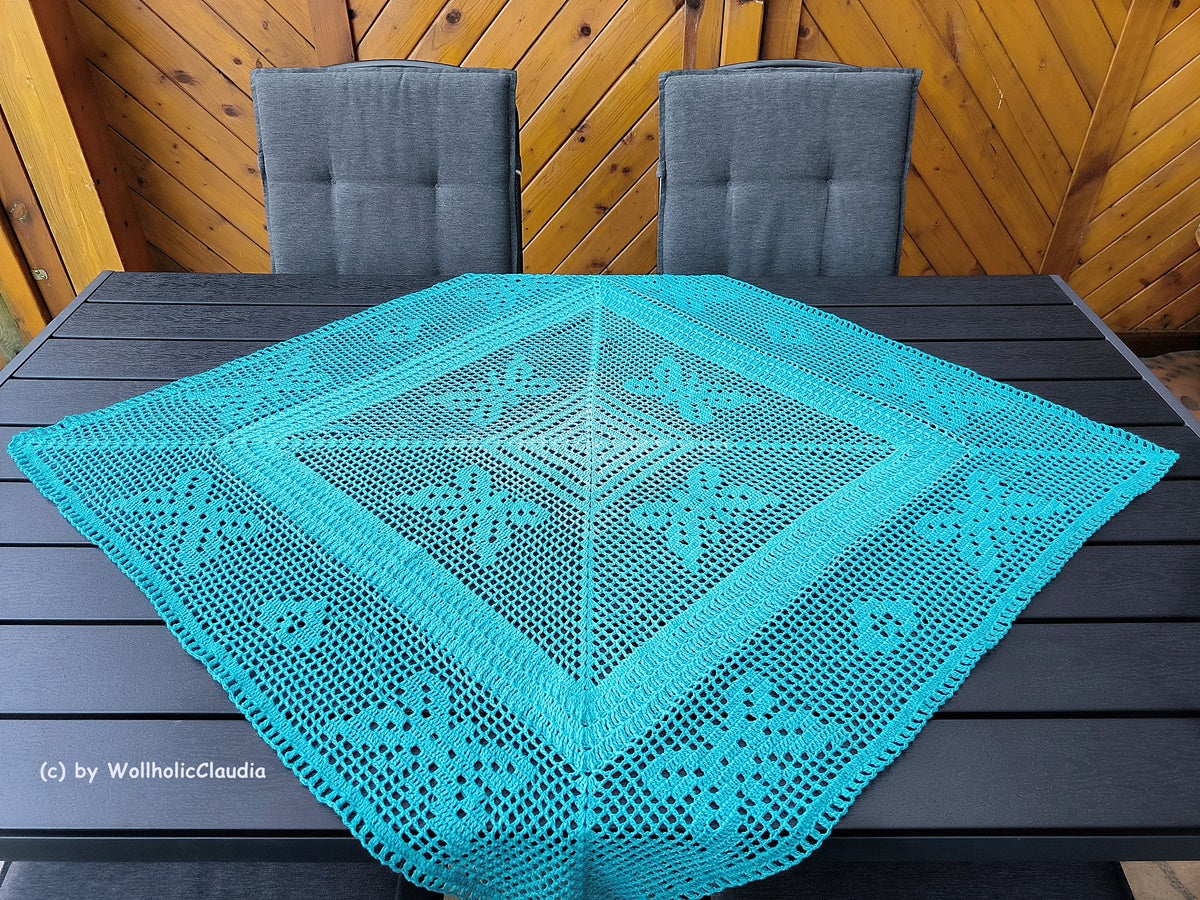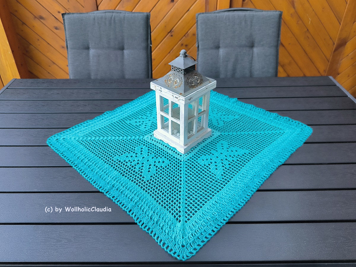 Dieses wunderschöne Set bestehend aus 2x Mitteldecke (in groß und klein) ist ein Mix aus Filethäkeln und dem herkömmlichen häkeln. 2 tolle Hingucker für drinnen oder draußen.