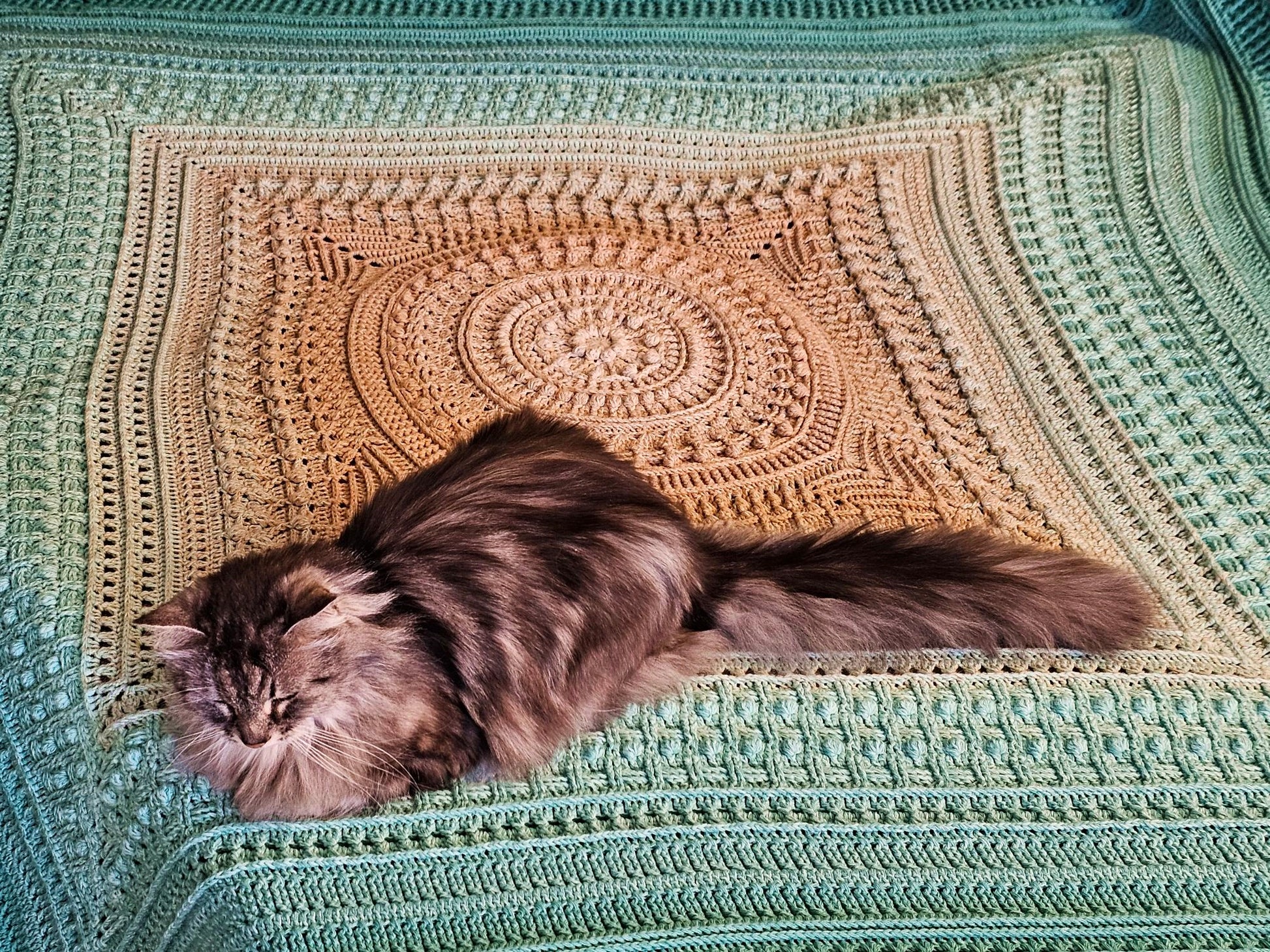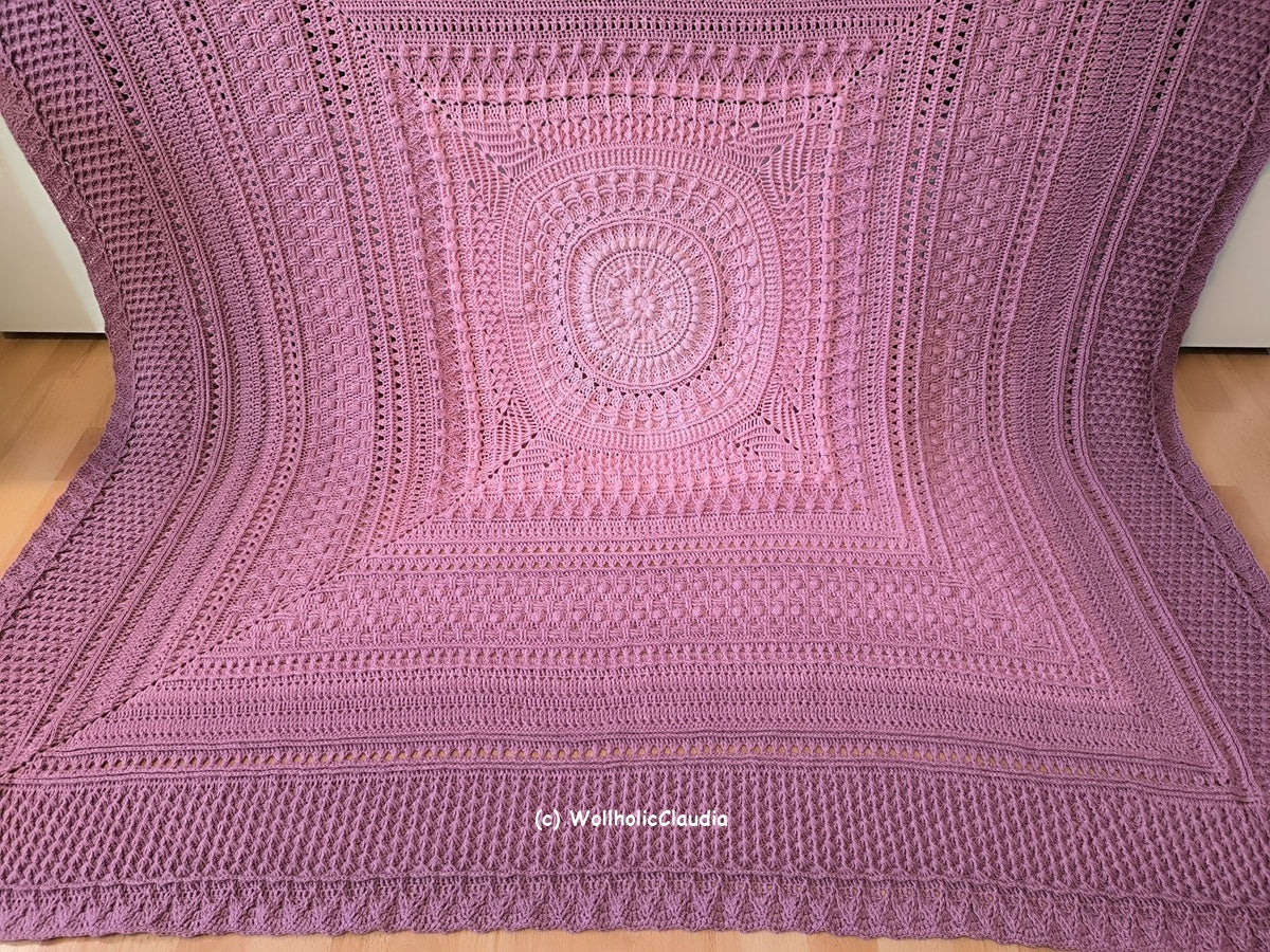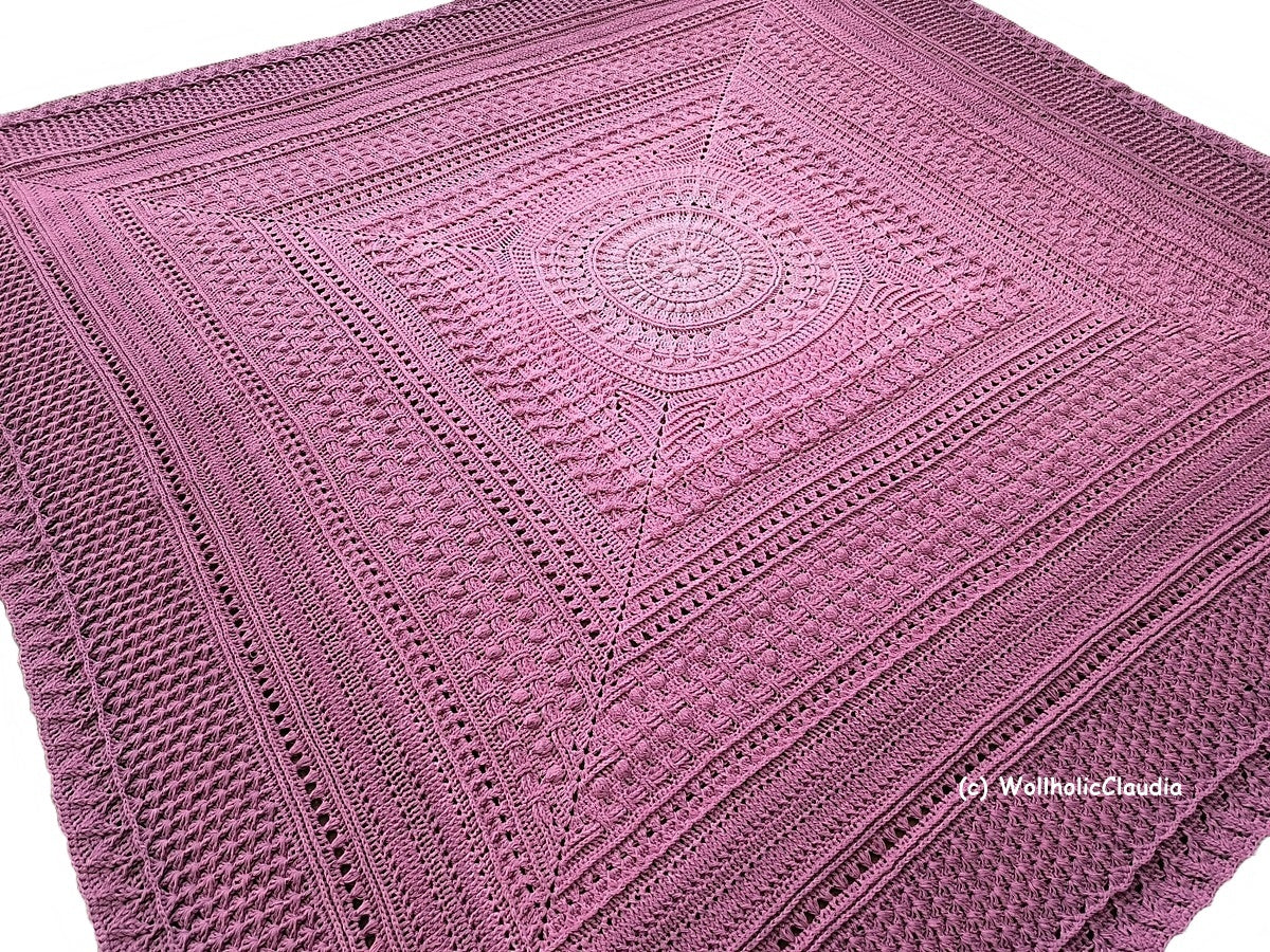 Die Decke ist eher für Fortgeschrittene Häkler(innen) geeignet, aber auch ambitionierte Anfänger mit Geduld und Ausdauer werden Freude daran haben.