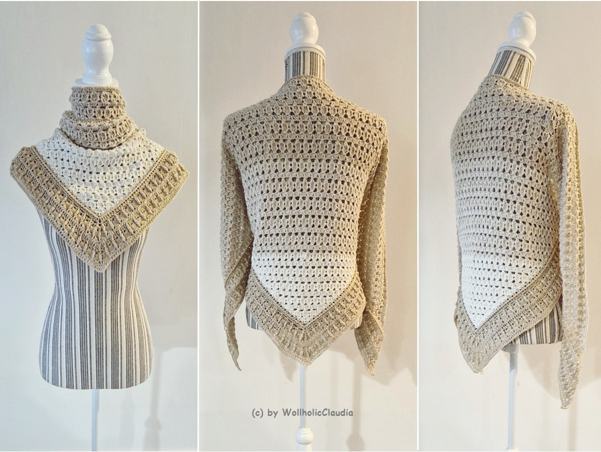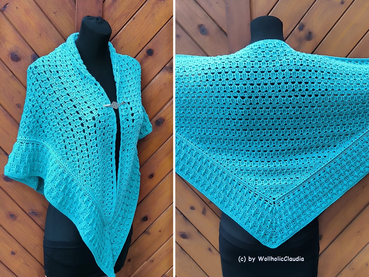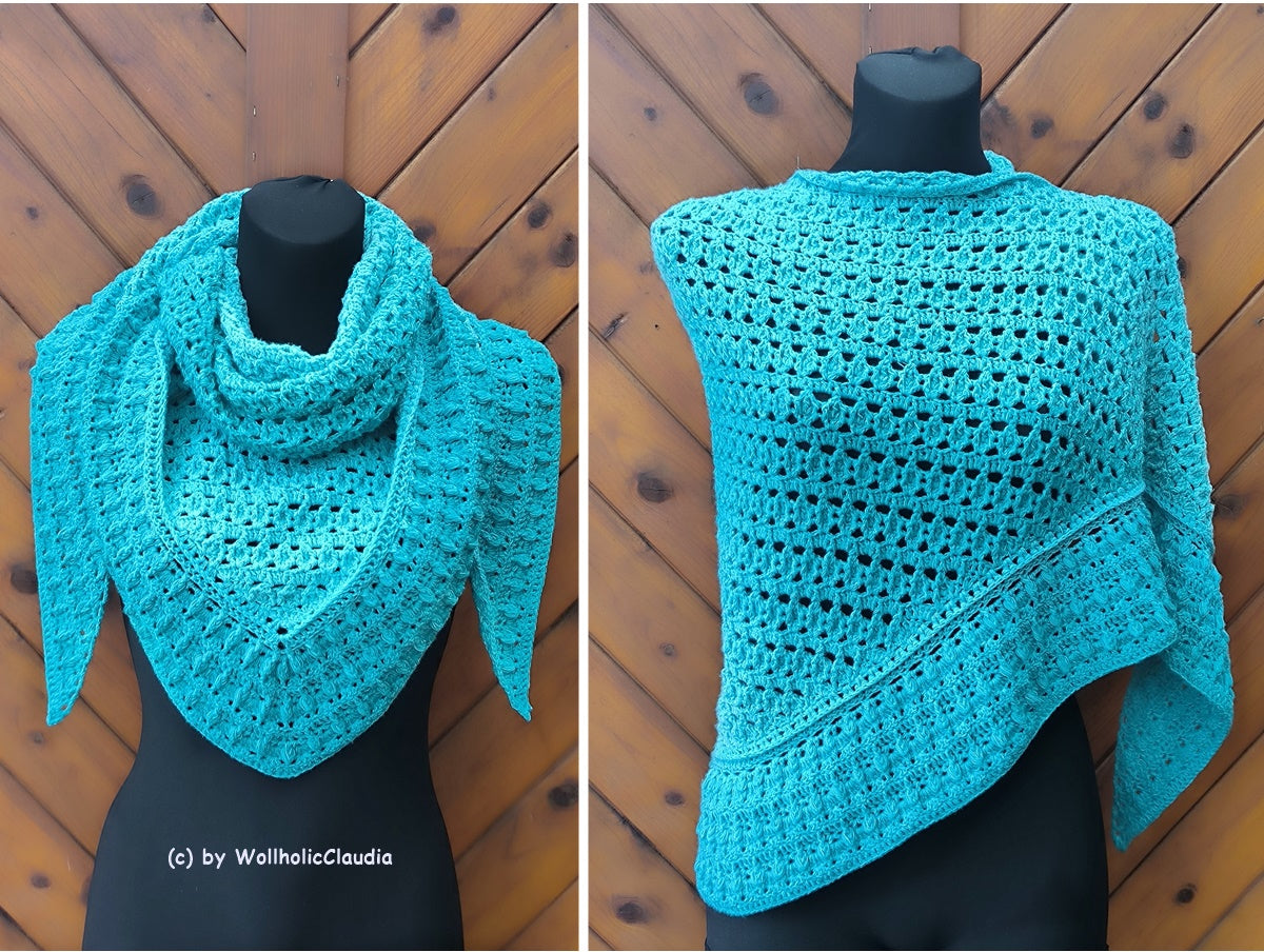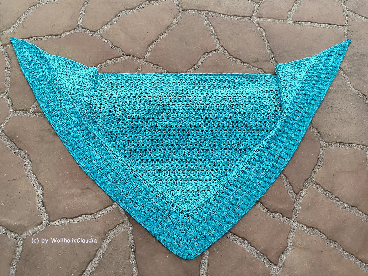 Tuch "Domino" ist ein toller Hingucker und wird auf eine spezielle Art gearbeitet. Aus diesem Grund wäre ein sanfter Farbverlauf ratsam (sofern man mit Farbverlauf arbeiten möchte). Man hat im letzten Abschnitt die Möglichkeit, es noch beliebig zu vergrößern, alles wird dir in der Anleitung genau erklärt.