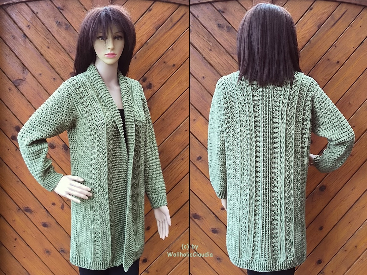 Beim vorgestellten Produkt handelt es sich nicht um die fertige Jacke, sondern um eine Häkelanleitung zum Selbstanfertigen als PDF-Datei zum Runterladen. Solltest du Fragen zur Anleitung haben, schreibe mir gern eine Nachricht, dann bekommst du bei Problemen Hilfestellung.