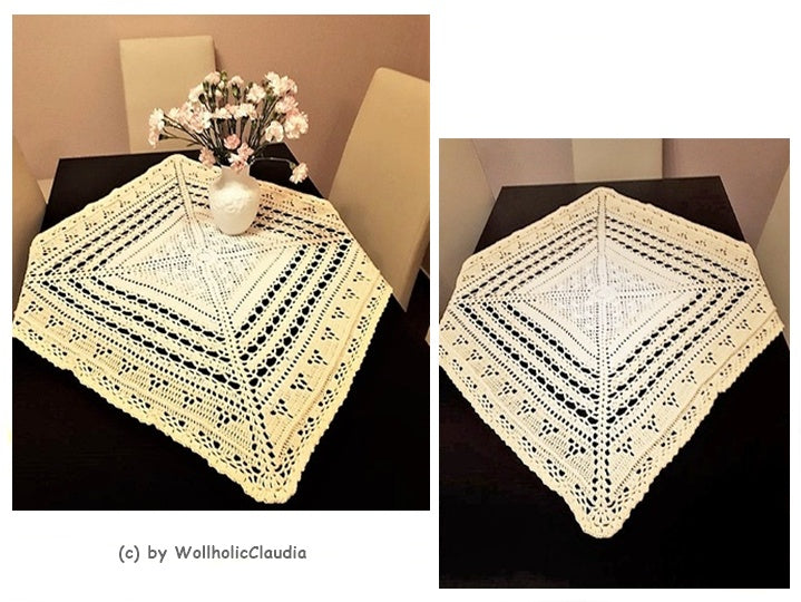 Beim vorgestellten Produkt handelt es sich nicht um die fertige Mitteldecke, sondern um Häkelanleitungen zum Selbstanfertigen als PDF-Datei zum Runterladen. Solltest du Fragen zur Anleitung haben, schreibe mir gern eine Nachricht, dann bekommst du bei Problemen Hilfestellung.
