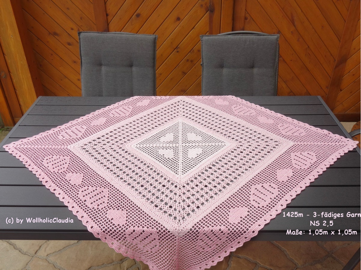 Häkelanleitung Mitteldecke "Herz an Herz"