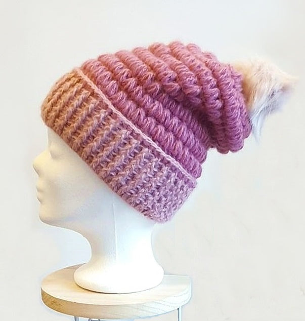 Die Mütze wird von unten nach oben gearbeitet und kann in jeder beliebigen Größe angefertigt werden.