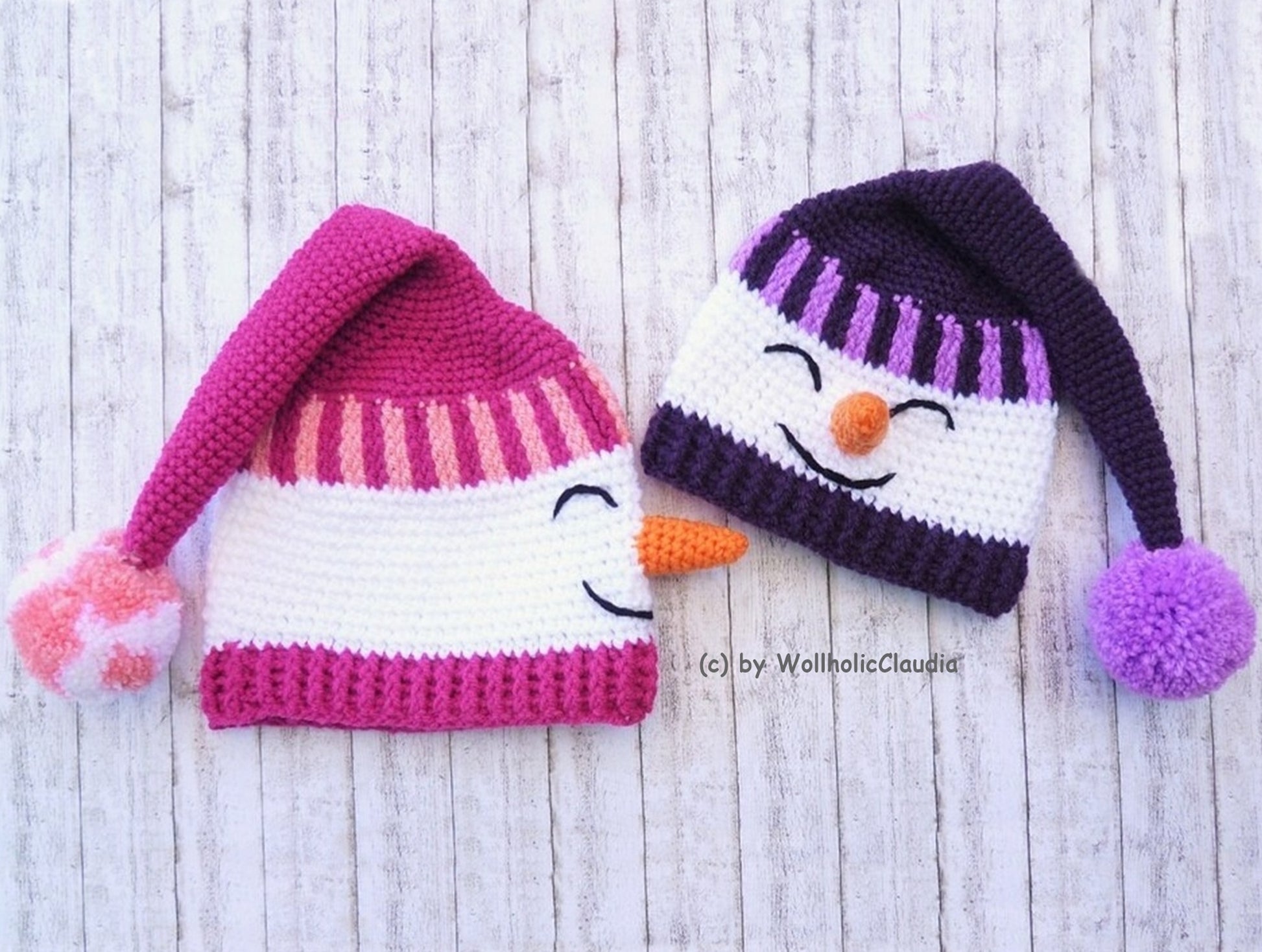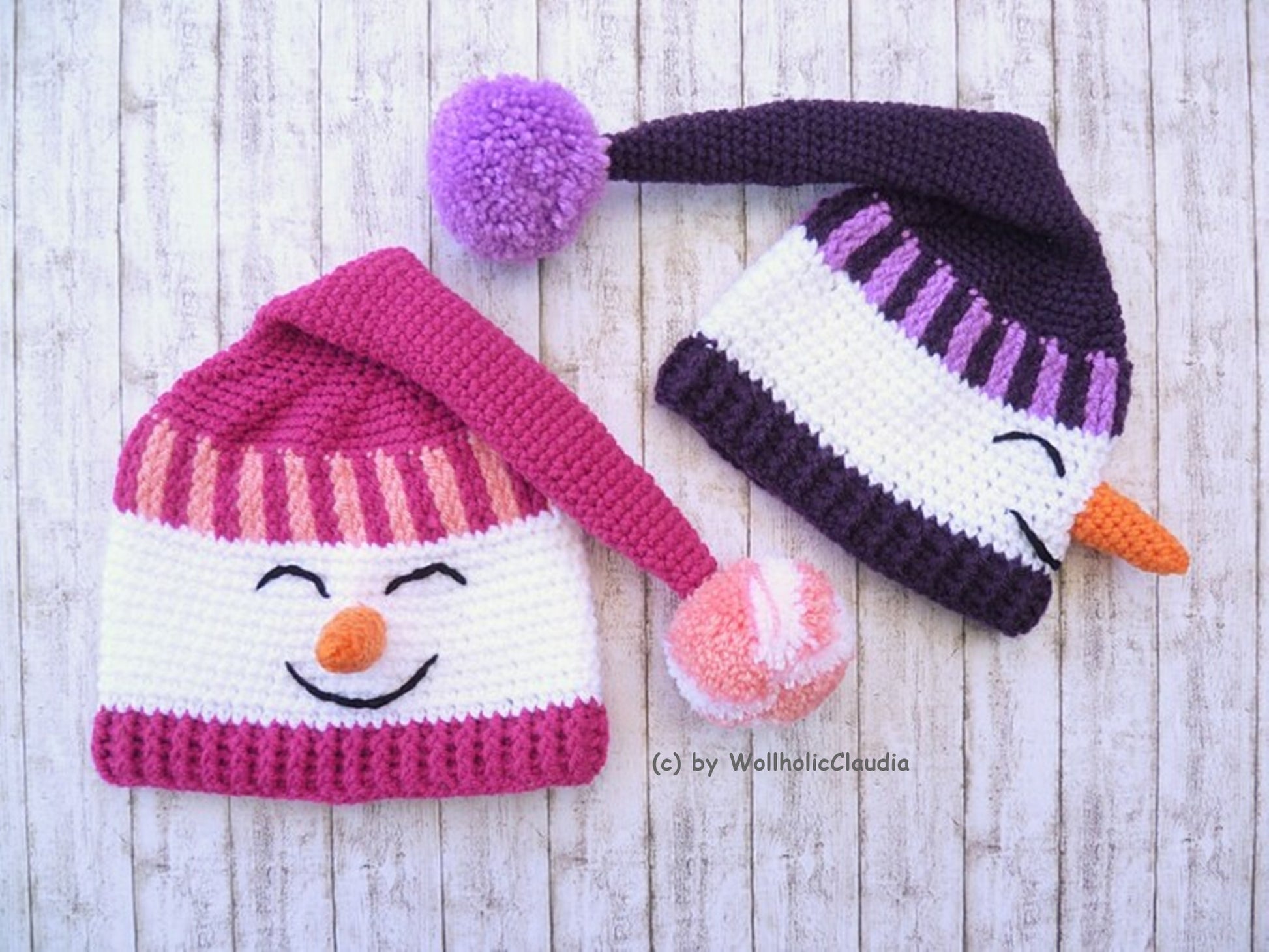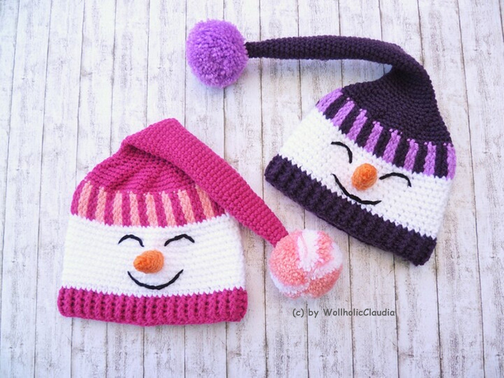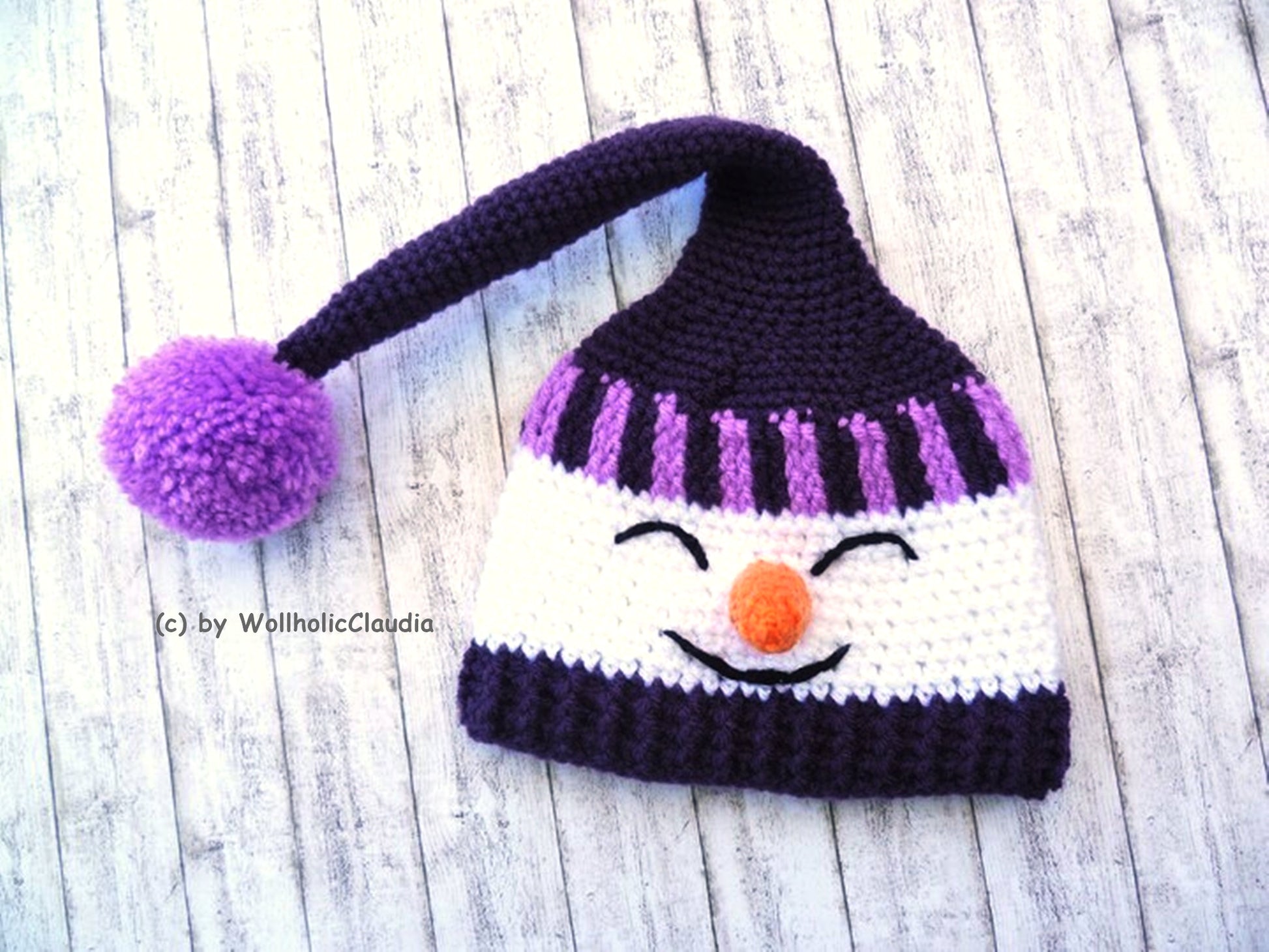 Häkelanleitung Mütze "Schneemann" - 3 Größen