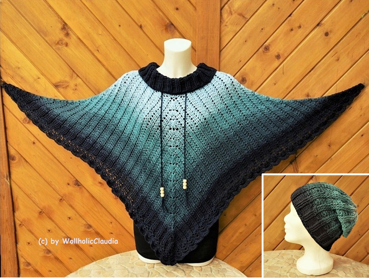 Häkelanleitung Poncho Mitternachtstraum + Mütze