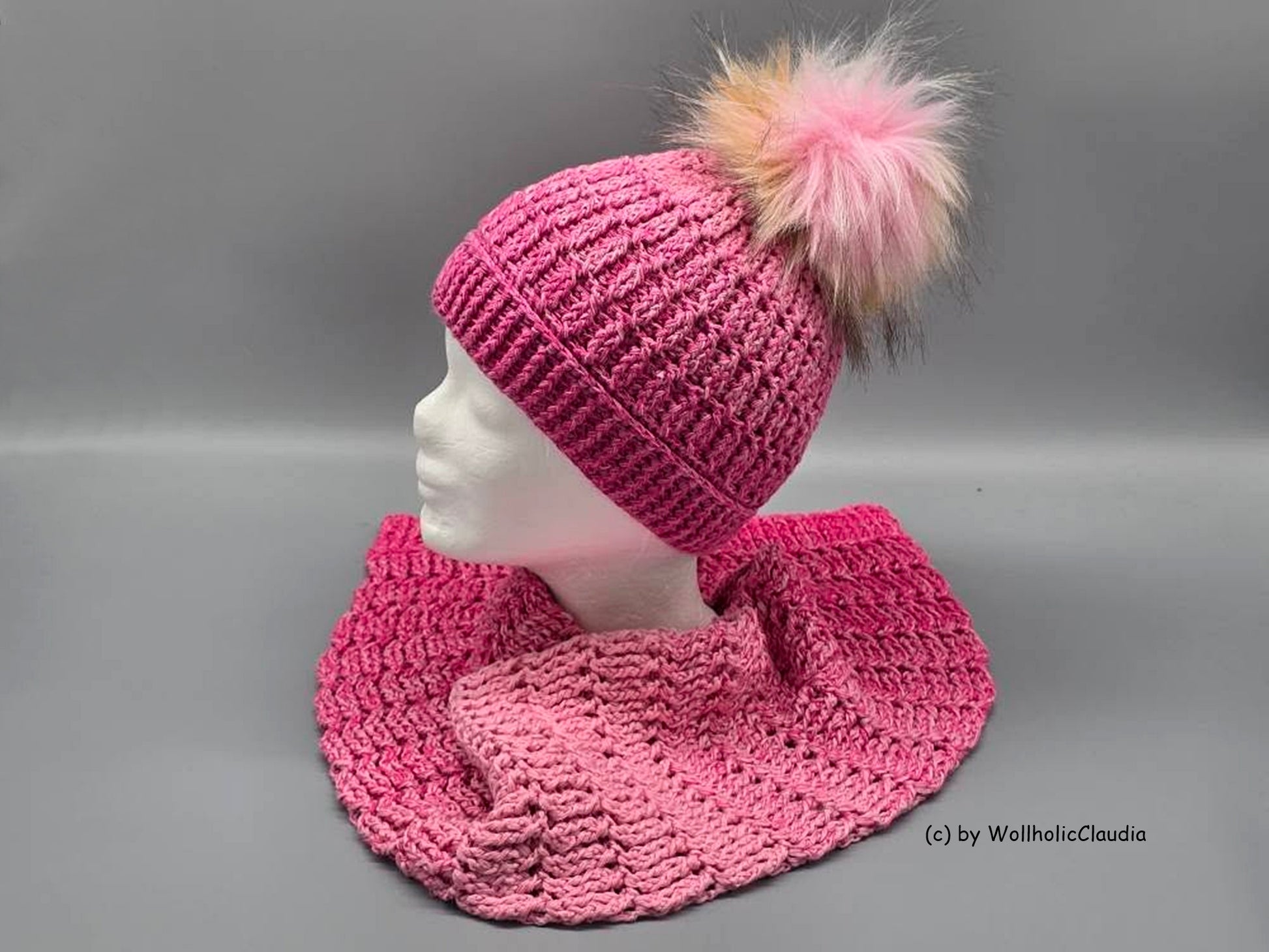 Hier nun auch als Set bestehend aus Mütze und Schal. Es besteht aus einem zeitlosen Muster und kann sowohl von Herren/Jungen als auch von Damen/ Mädchen getragen werden. Die Mütze sowie auch der Schal sind natürlich individuell in der Länge bzw. der Größe/ Breite und mit jedem beliebigen Garn und der dazu passenden Nadelstärke machbar.