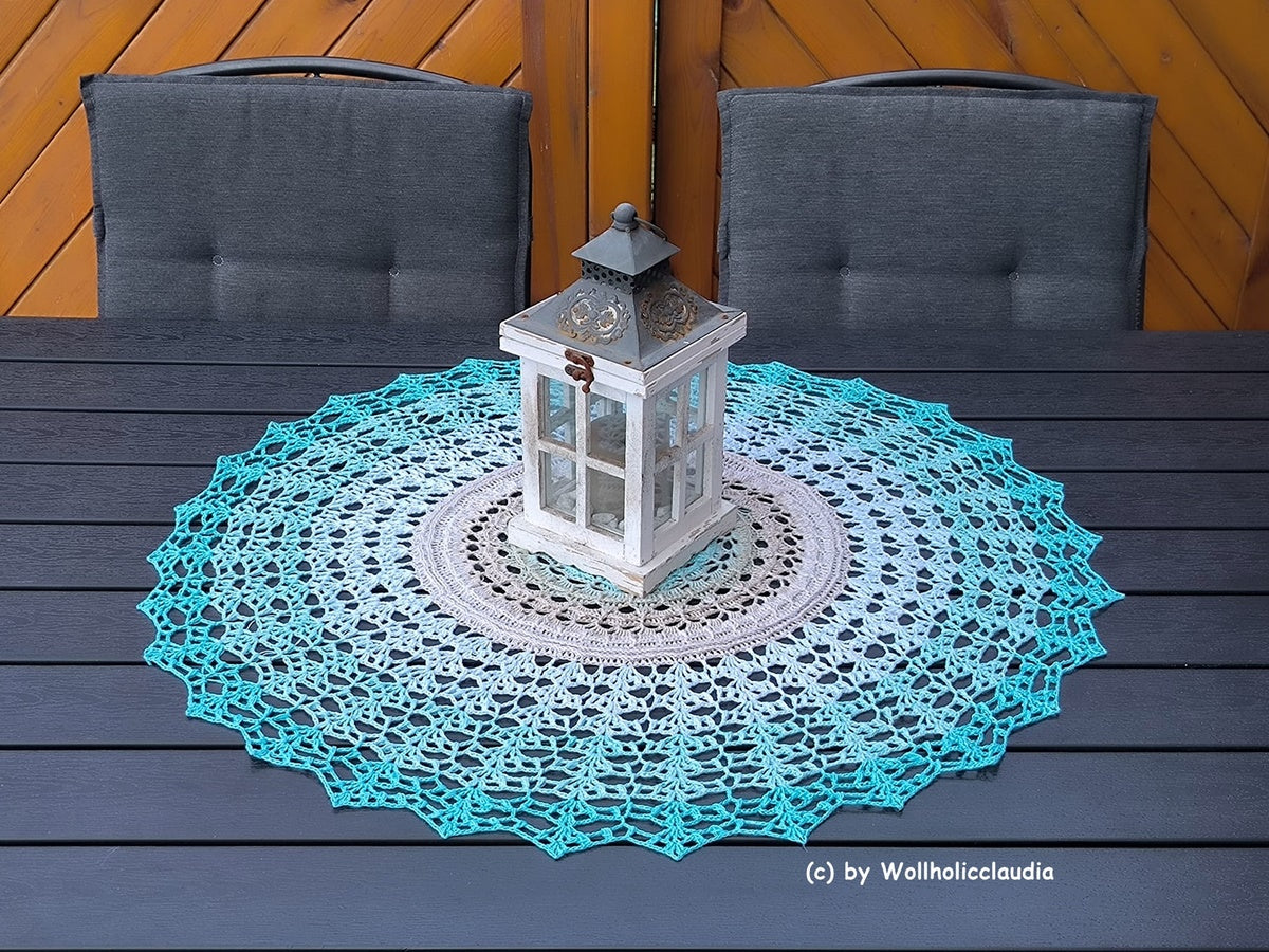Mit dieser Anleitung kannst du dir eine wunderschöne, runde Mitteldecke oder ein hübsches Mandala häkeln. Die Größe kann man individuell gestalten und du kannst mit jedem beliebigen Garn und der dazu passenden Nadelstärke arbeiten.