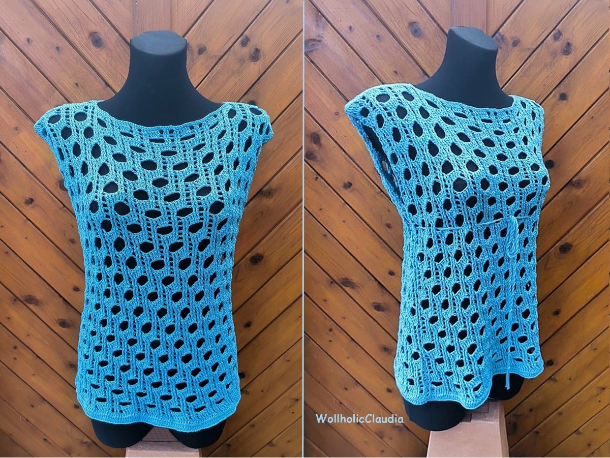 Shirt "Tetra" ist ein luftiges Sommertop, ein toller Hingucker und relativ schnell gehäkelt. Du kannst es ganz individuell deinen Maßen anpassen, alles wird genau erklärt. Man kann es mit Kordel als Tunika oder lässig als Shirt tragen.