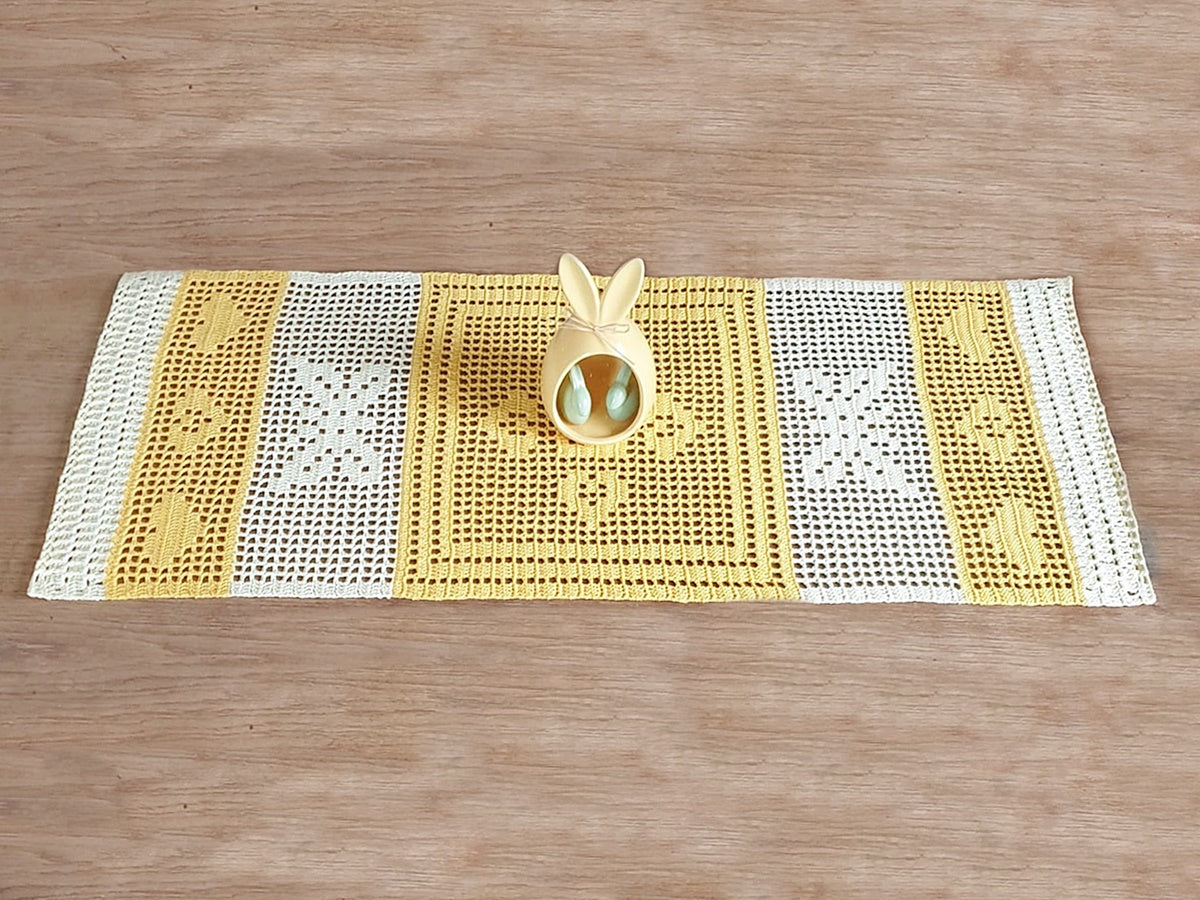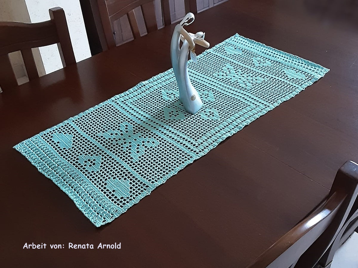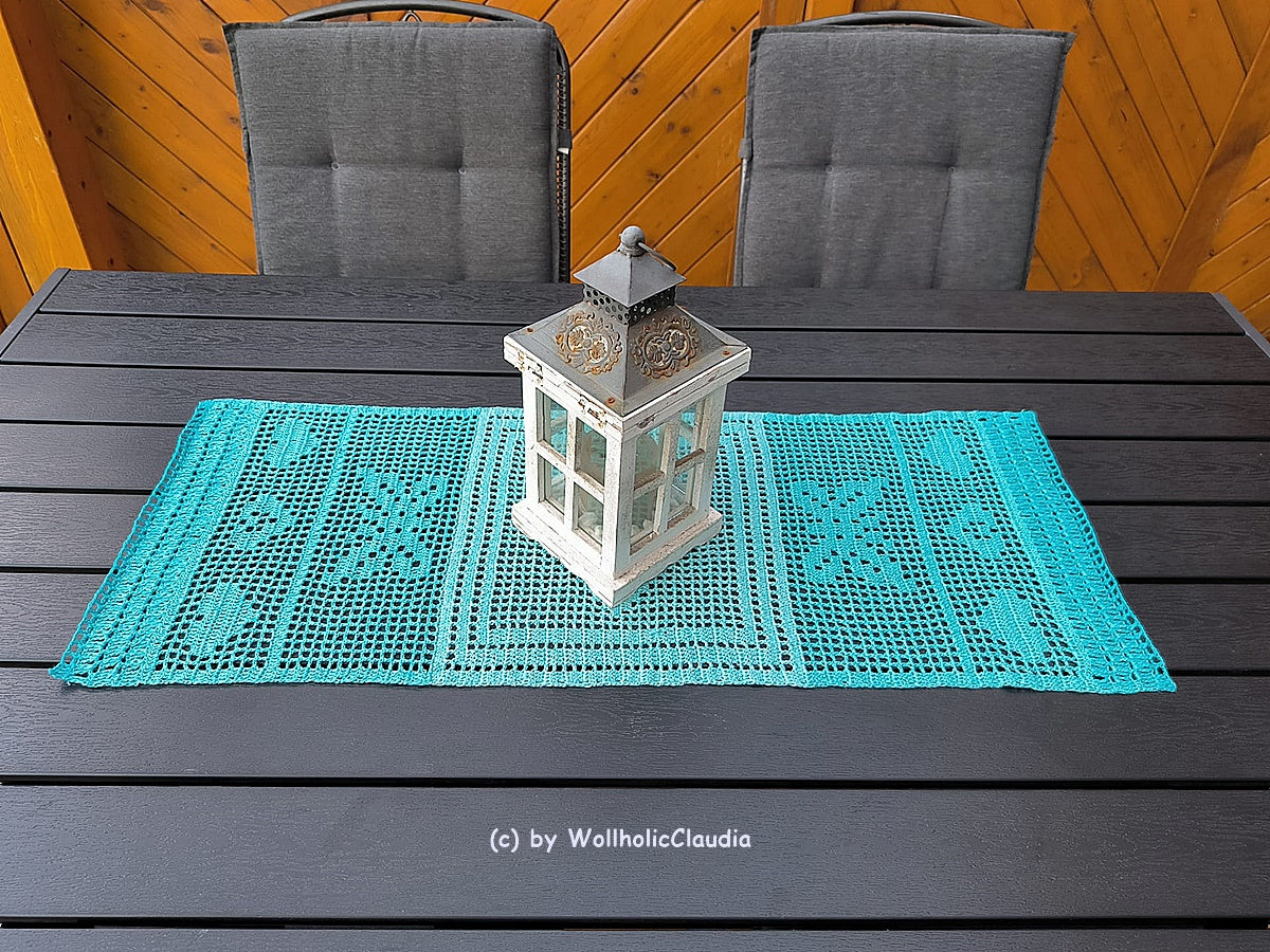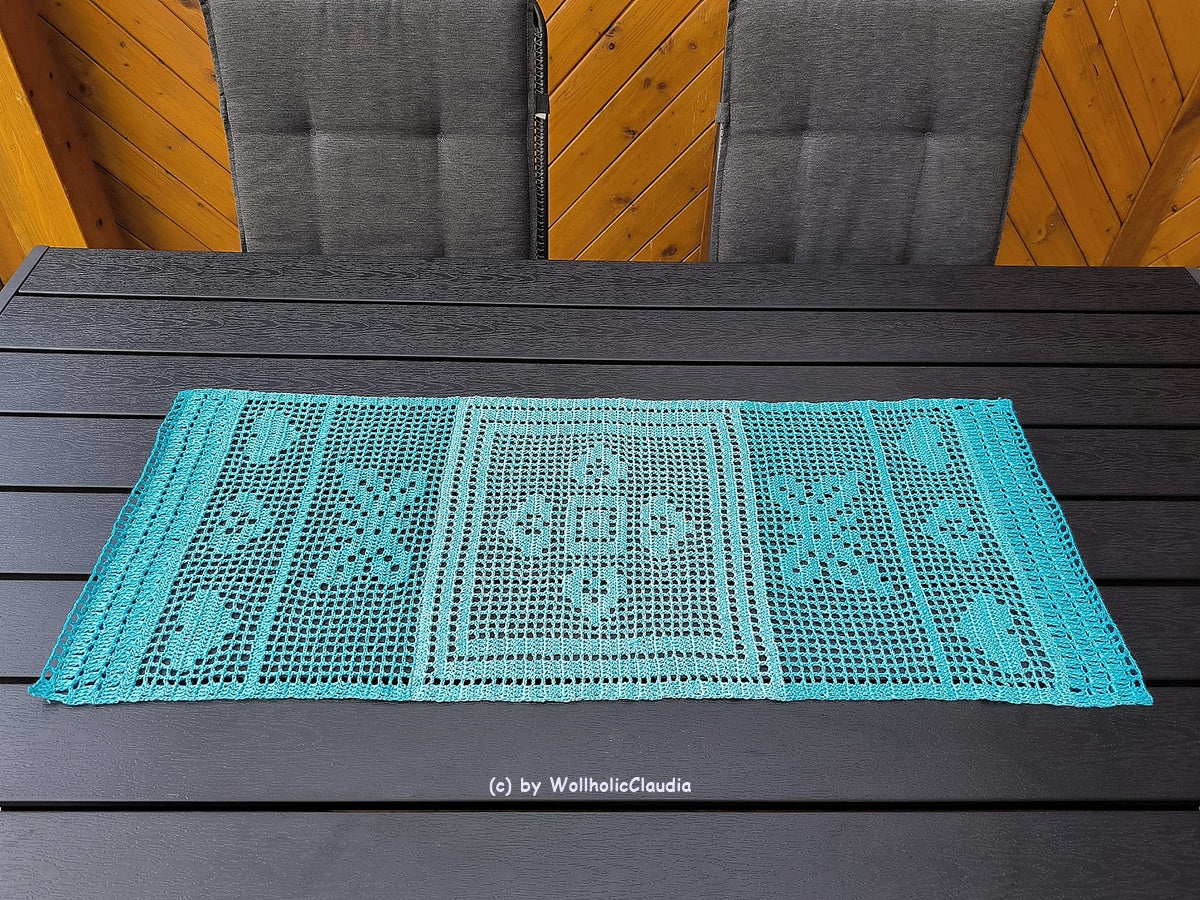 Dieser wunderschöne Läufer ist ein Mix aus Filethäkeln und dem herkömmlichen häkeln. Ein toller Hingucker für drinnen oder draußen.